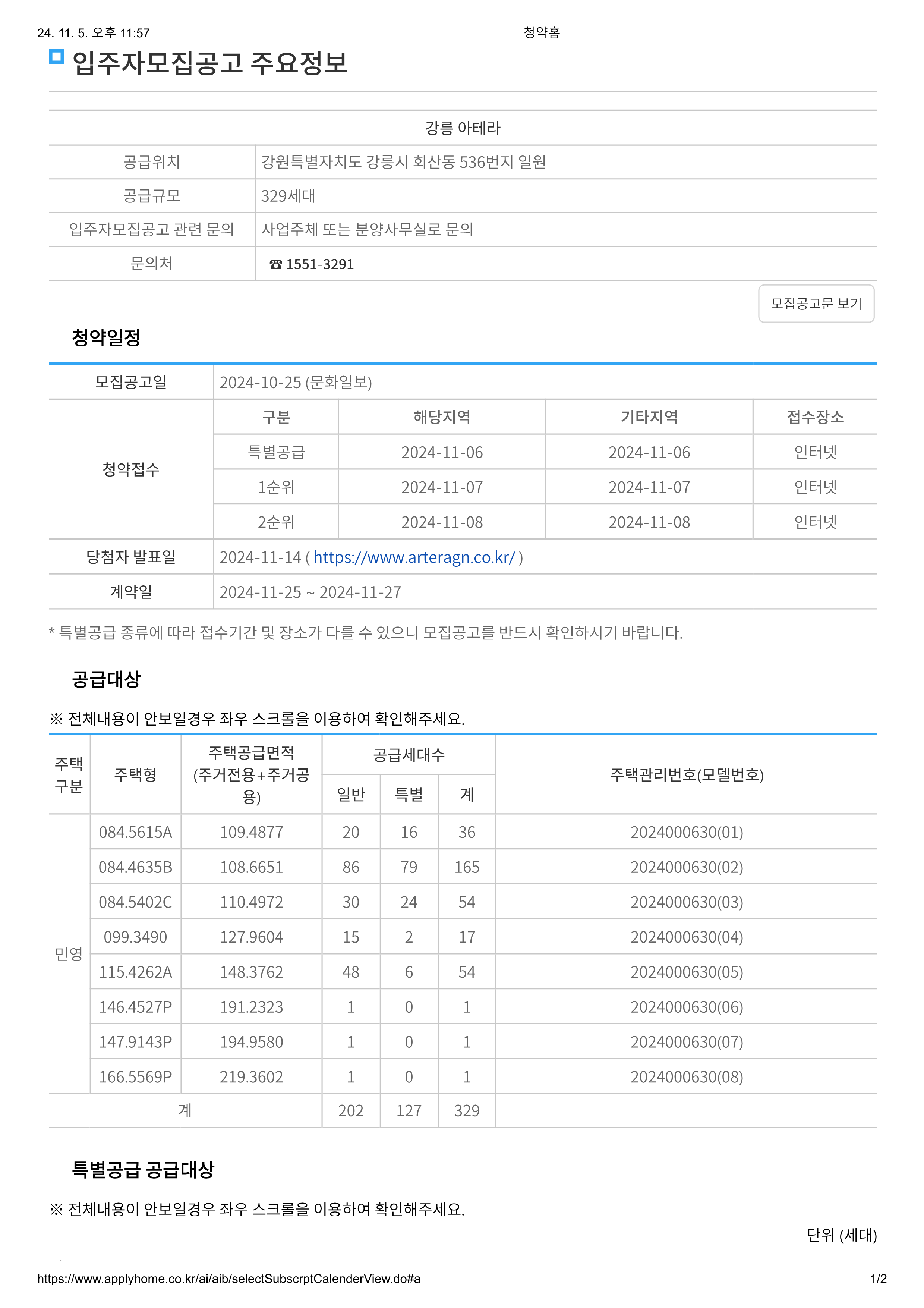 | 특별공급 | 2024-11-05 | 2024-11-05 | 인터넷 | |||||