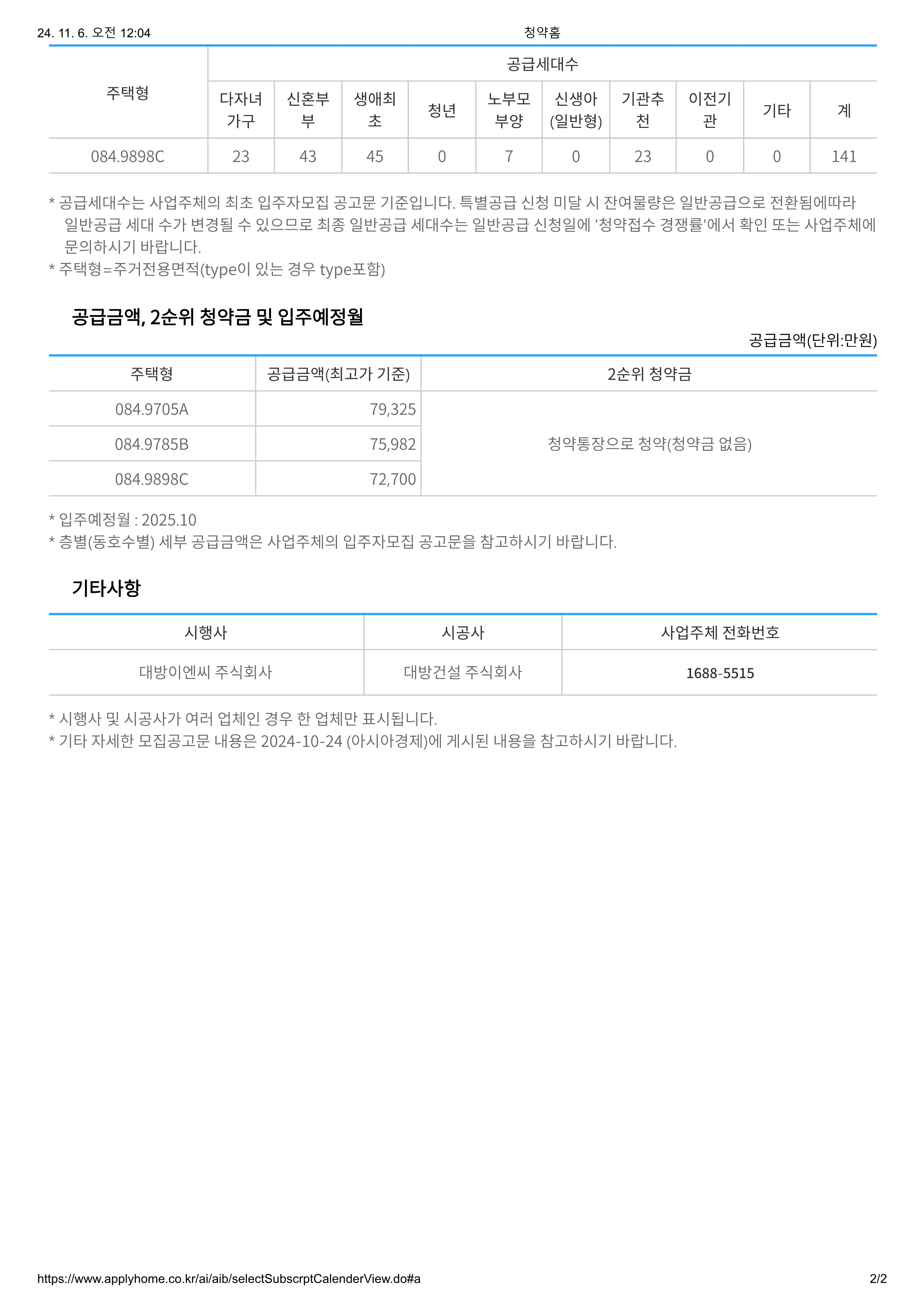 | 청약접수 | 2024-11-06 ~ 2024-11-06 | |||||