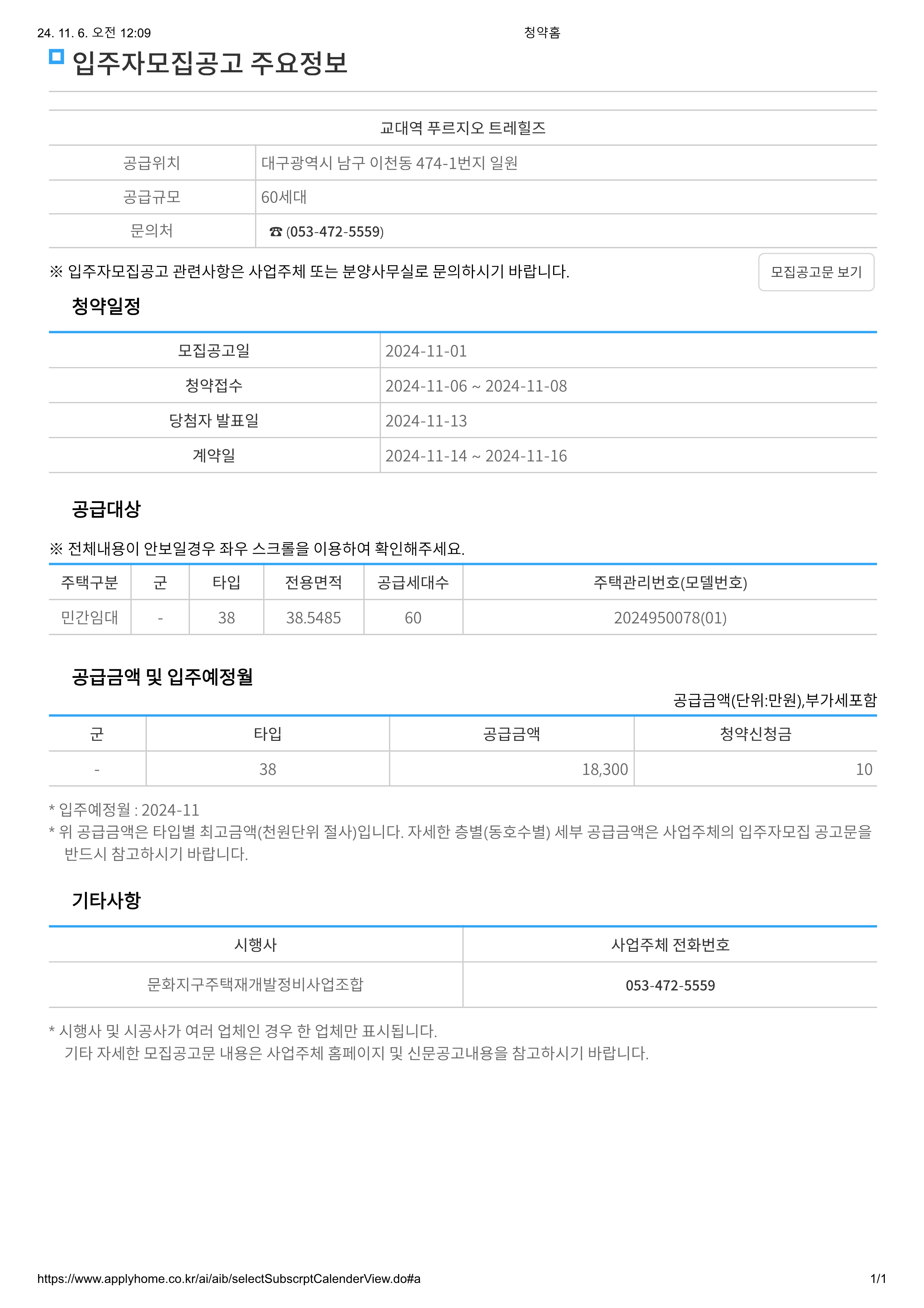 | 청약접수 | 2024-11-06 ~ 2024-11-06 | ||||||