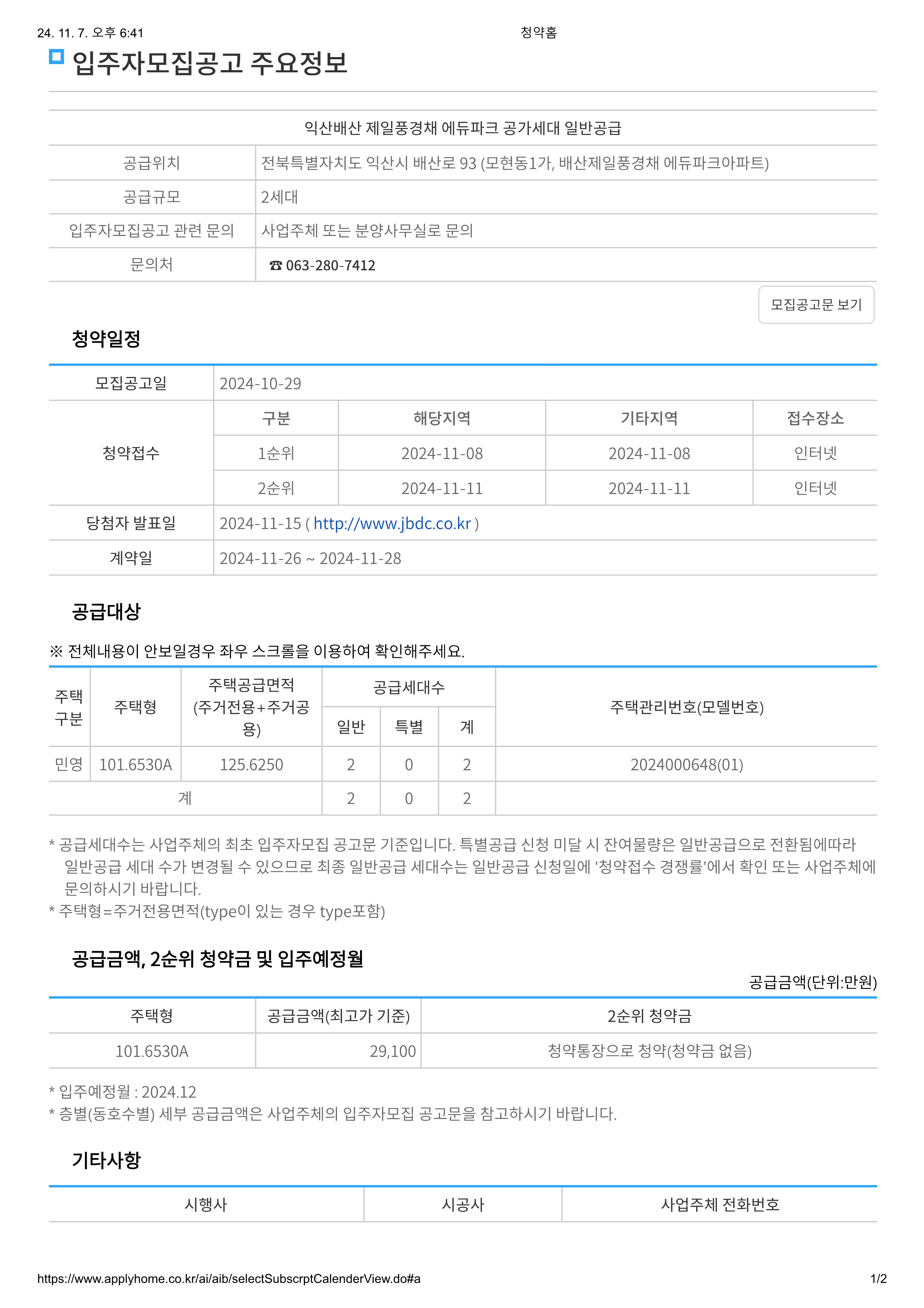 | 특별공급 | 2024-11-06 | 2024-11-06 | 인터넷 | |||||