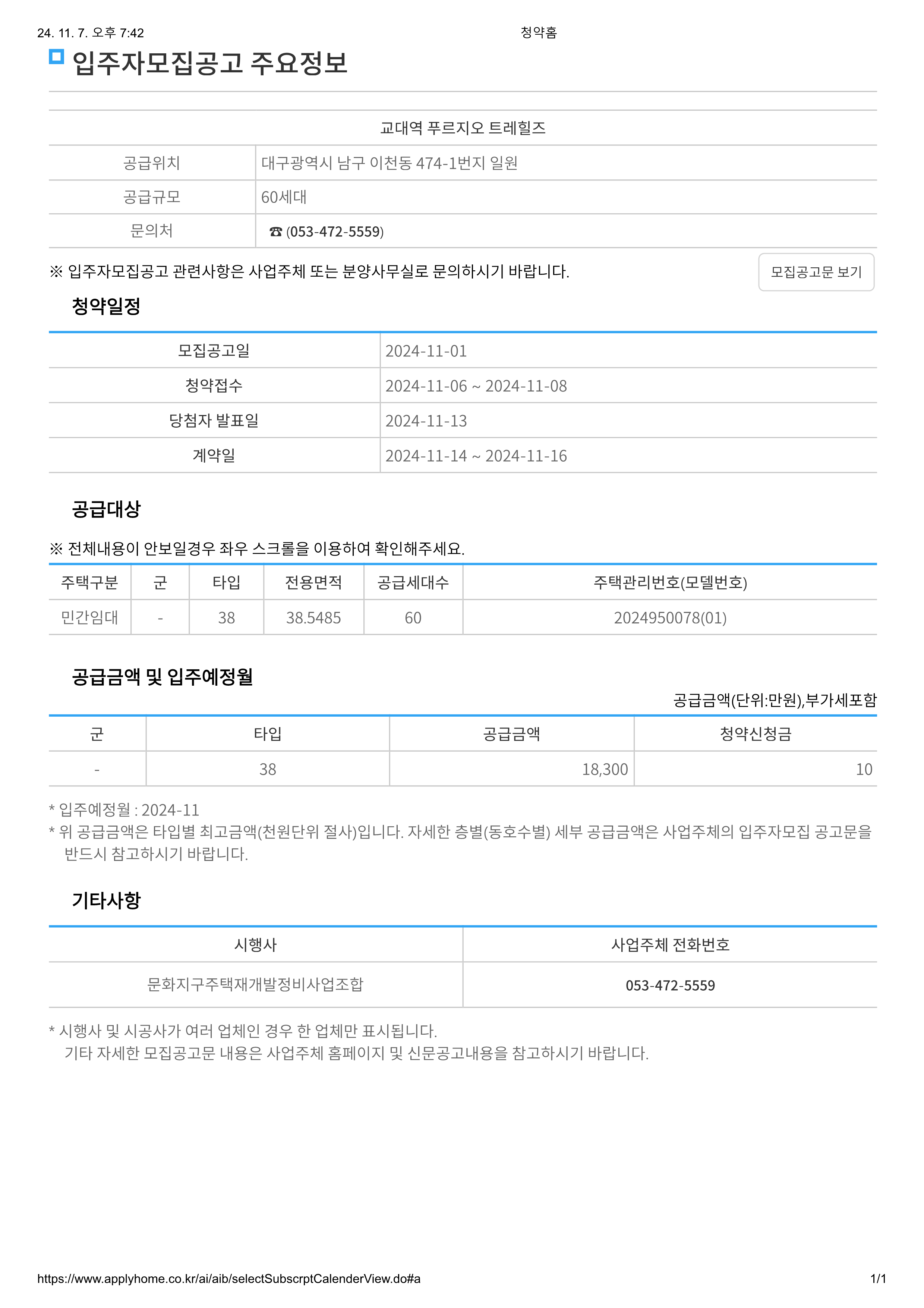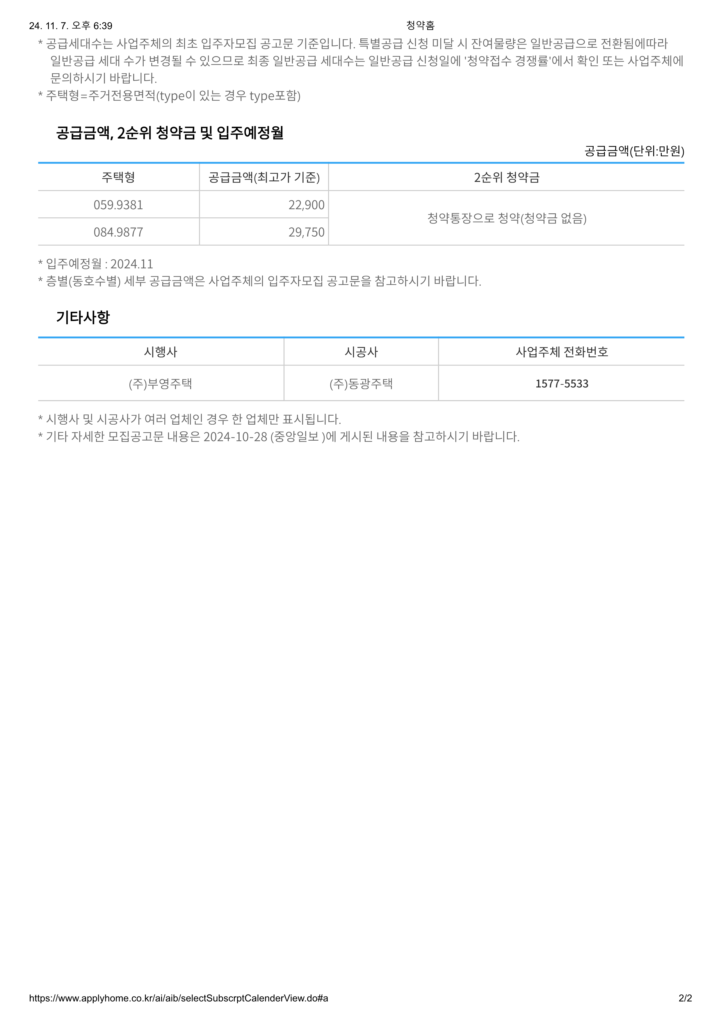 | 청약접수 | 2024-11-07 ~ 2024-11-08 | |||||